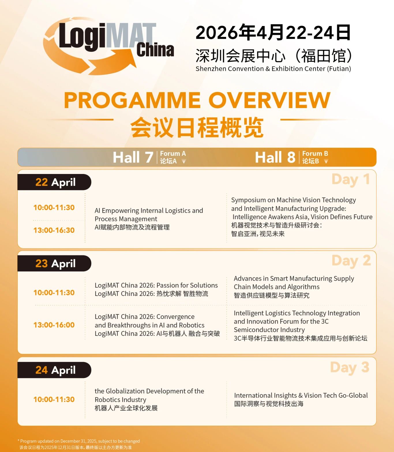 LogiMAT China 2026国际内部物流及流程管理展览会将于 2026年4月22日至24日在深圳会展中心(福田)隆重举行。本届展会规模再创新高,预计展出面积达 40,000平方米,汇聚 400余家 全球领先展商与 20,000余名专业观众,打造亚太地区内部物流与智能供应链的顶级盛会。