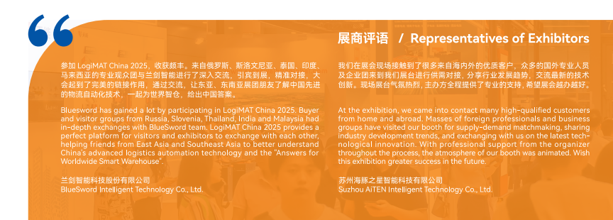 依托LogiMAT全球品牌多年的资源积累,本届展会特别强化国际服务能力。重点邀约日本、韩国及东盟地区的采购决策层,为参展商提供更多与海外买家对接的机会,促进国内外物流行业的交流与合作。通过与德国母展的深度联动,实现全球物流资源的无缝对接。